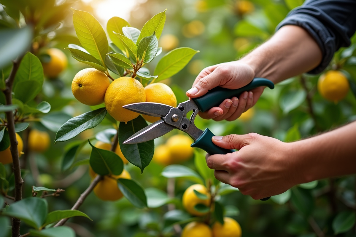 Avant toute chose, préparez l’outillage : un sécateur propre et bien affûté fait toute la différence lors de la coupe. Commencez par inspecter l’arbre. Repérez les branches sèches, malades ou qui poussent vers l’intérieur, et ôtez-les sans hésiter : elles bloquent la lumière et limitent la bonne aération du feuillage, deux aspects fondamentaux pour la santé du citronnier.
